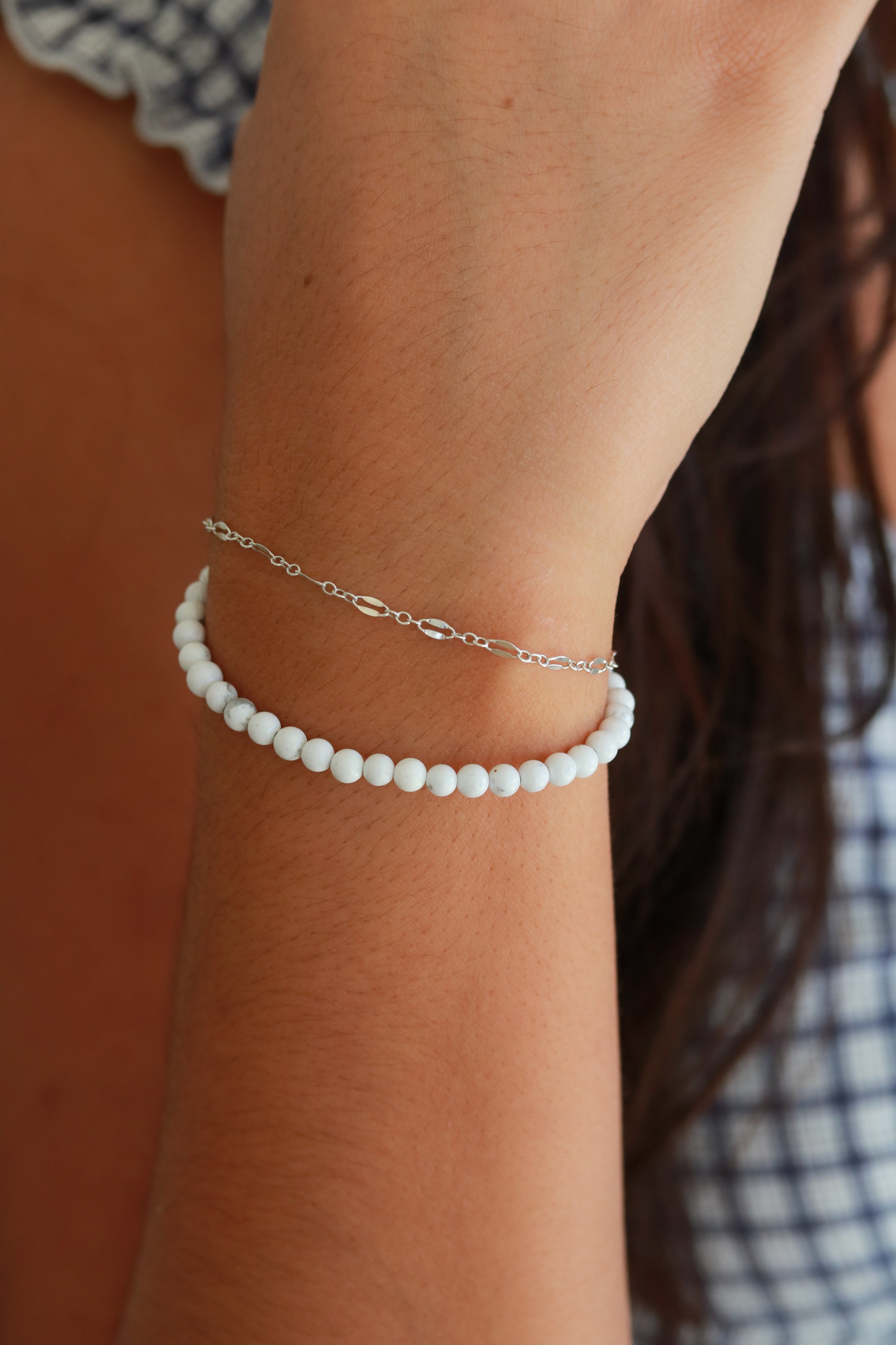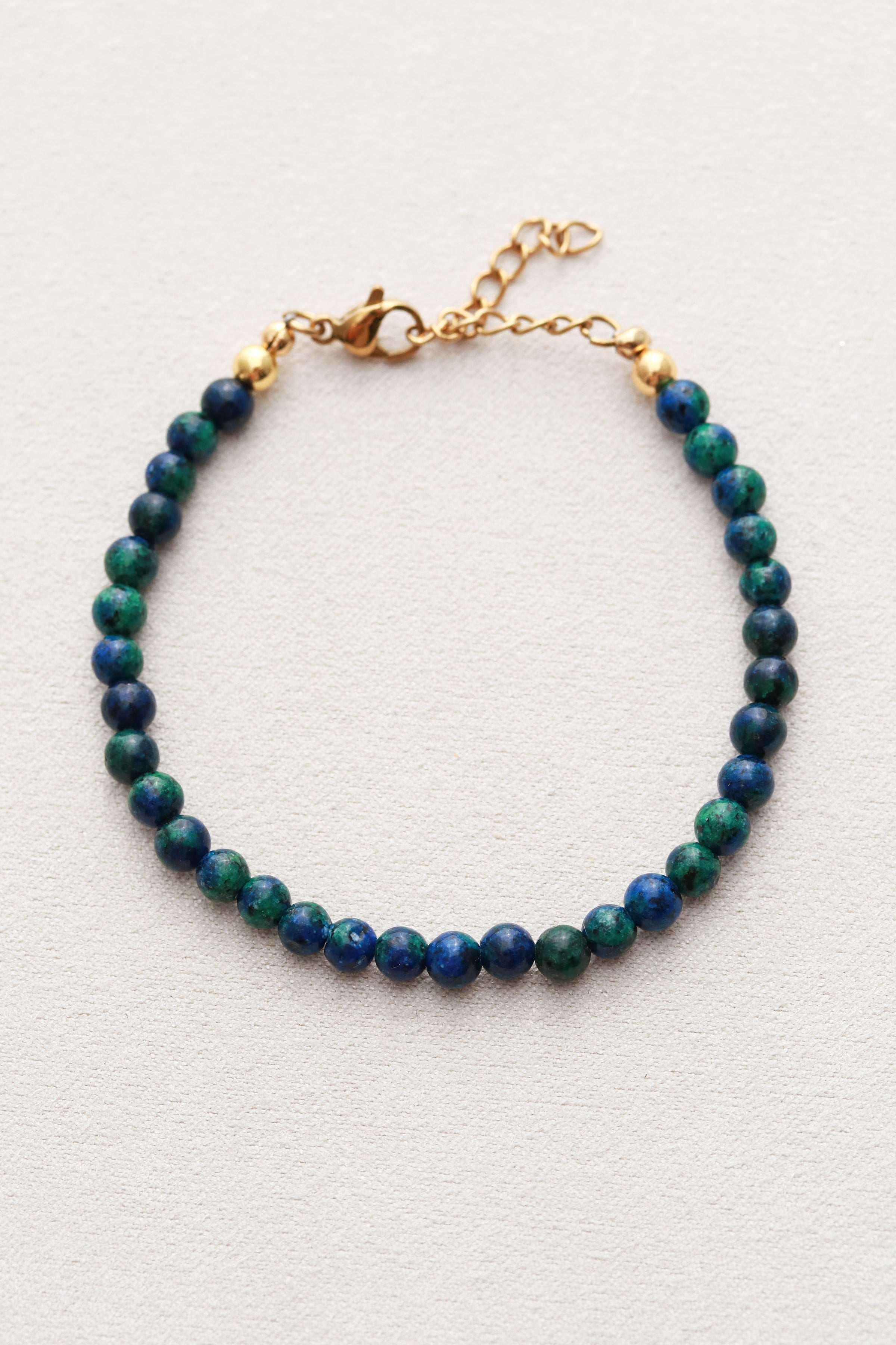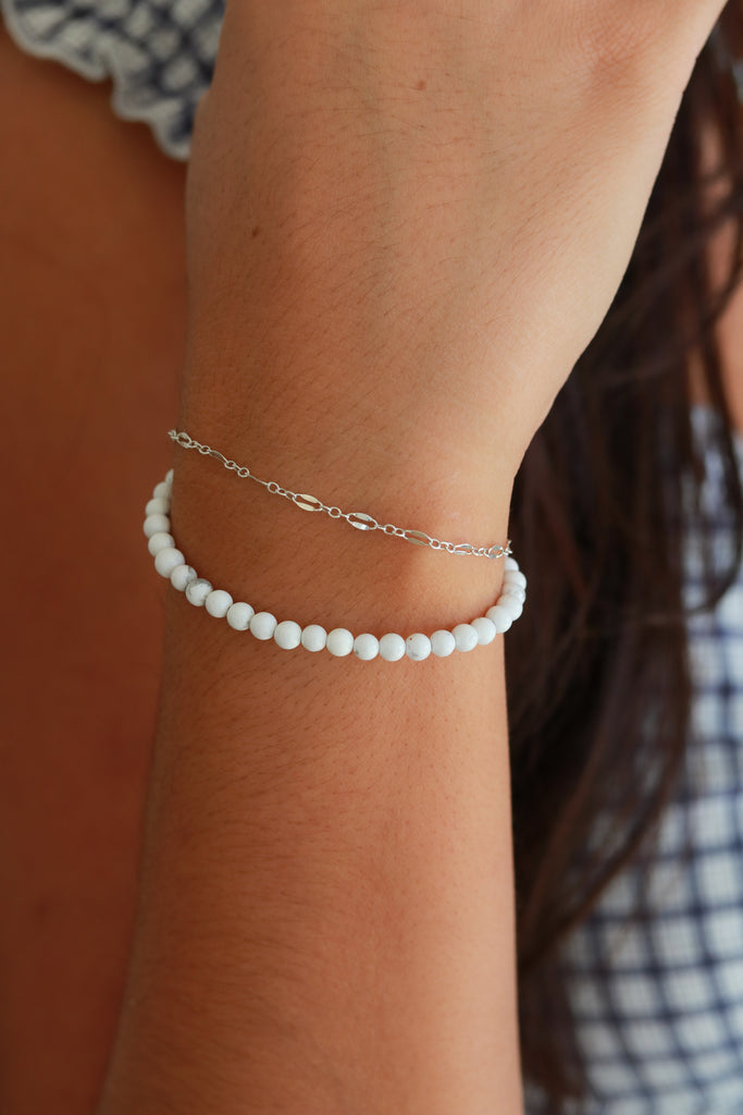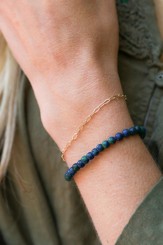 Natural gemstones with modern style. Made from 6" of beaded stones with a smooth, glossy finish and a 1.5" extender for the perfect adjustable fit. Lightweight and designed for everyday stacking. Wear alone or layer with your favorite bracelet chains.