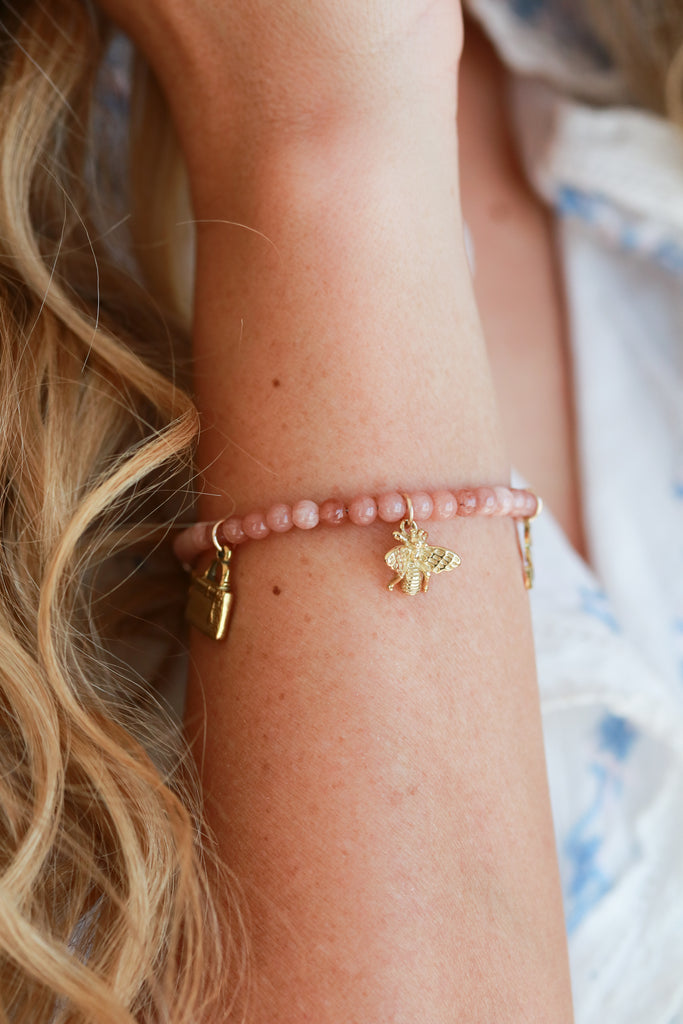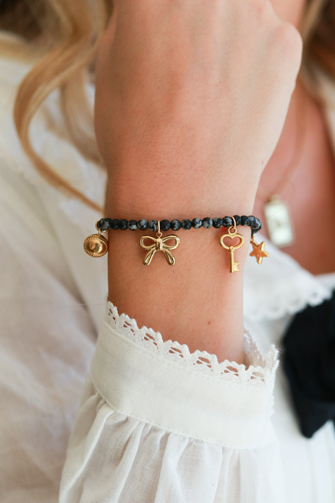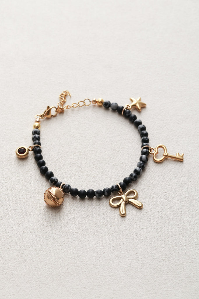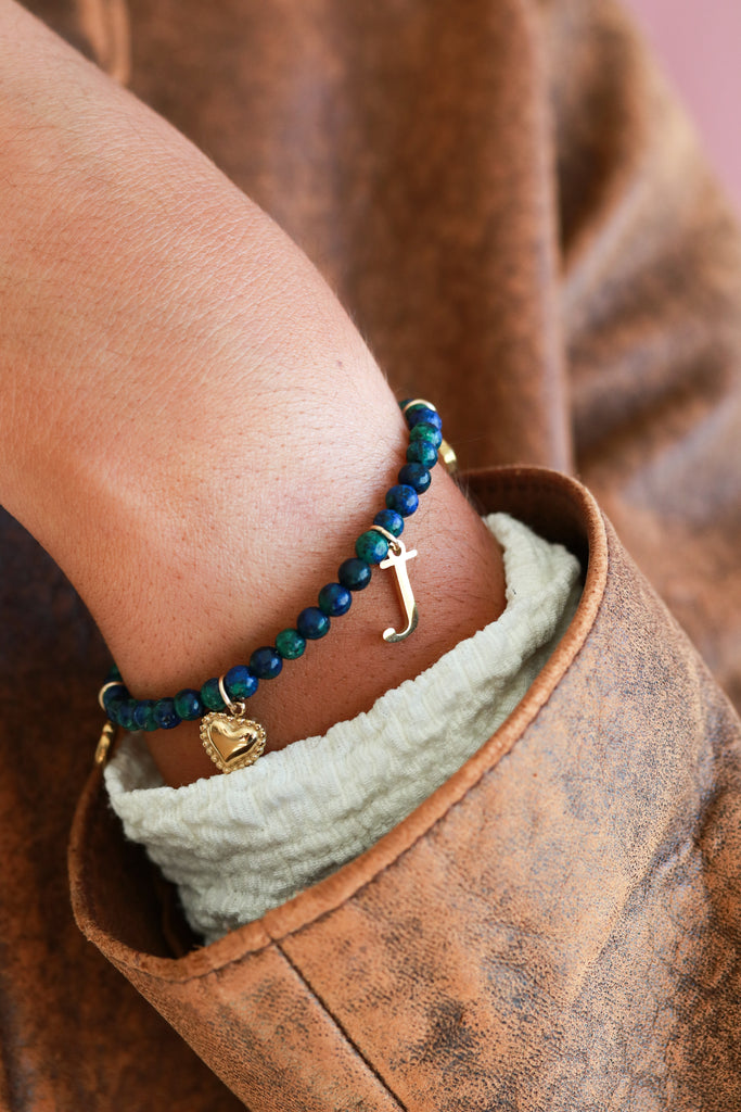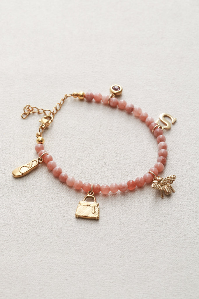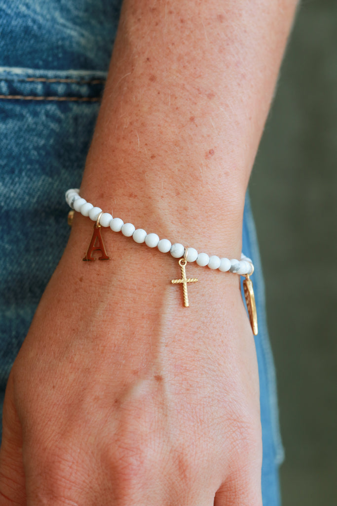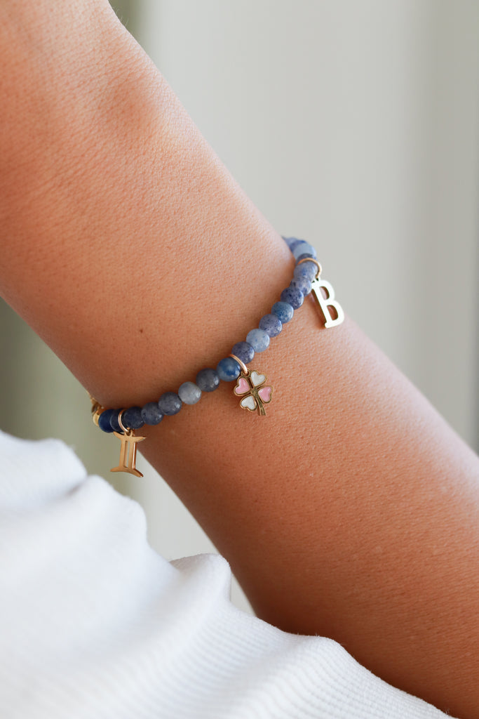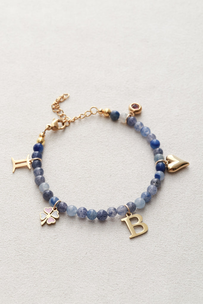 Create a bracelet that tells your story. Our custom Beaded Stone Charm Bracelet can be personalized with up to 6 gold charms to represent milestones, people, pets, places, talents, hobbies, and everything that makes you who you are. Choose from over 100 options including initials, hearts, stars, hobbies, travel icons, birthstones, and more.