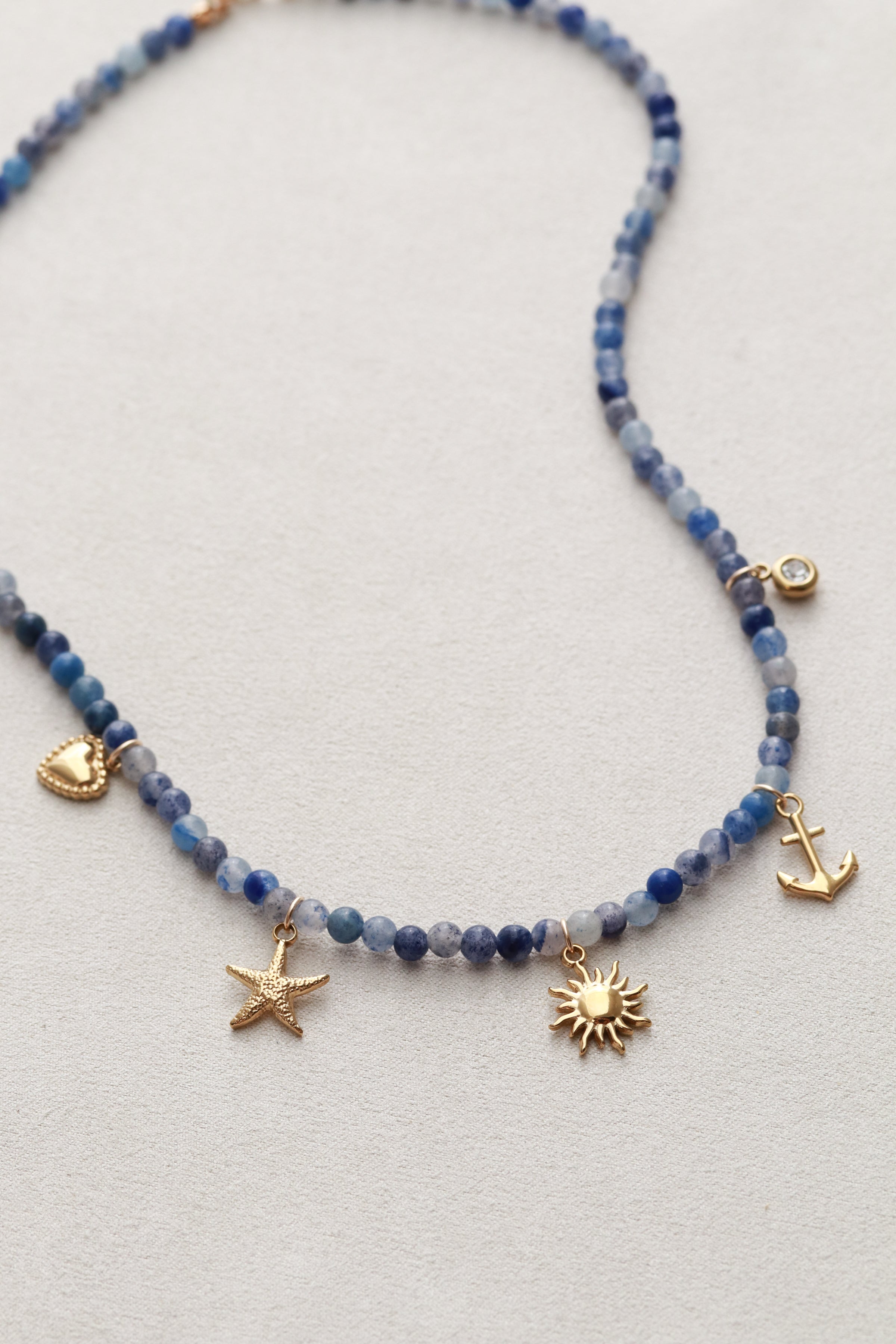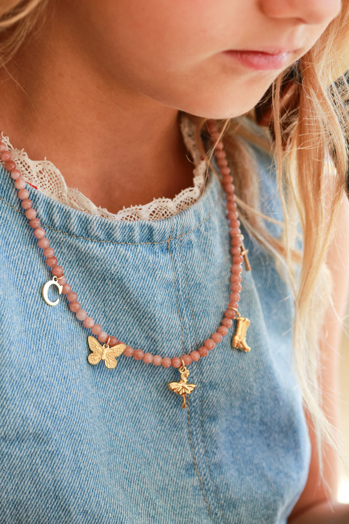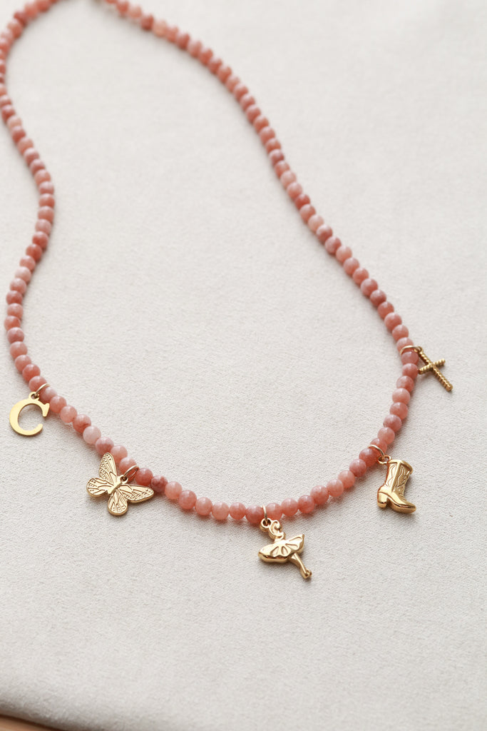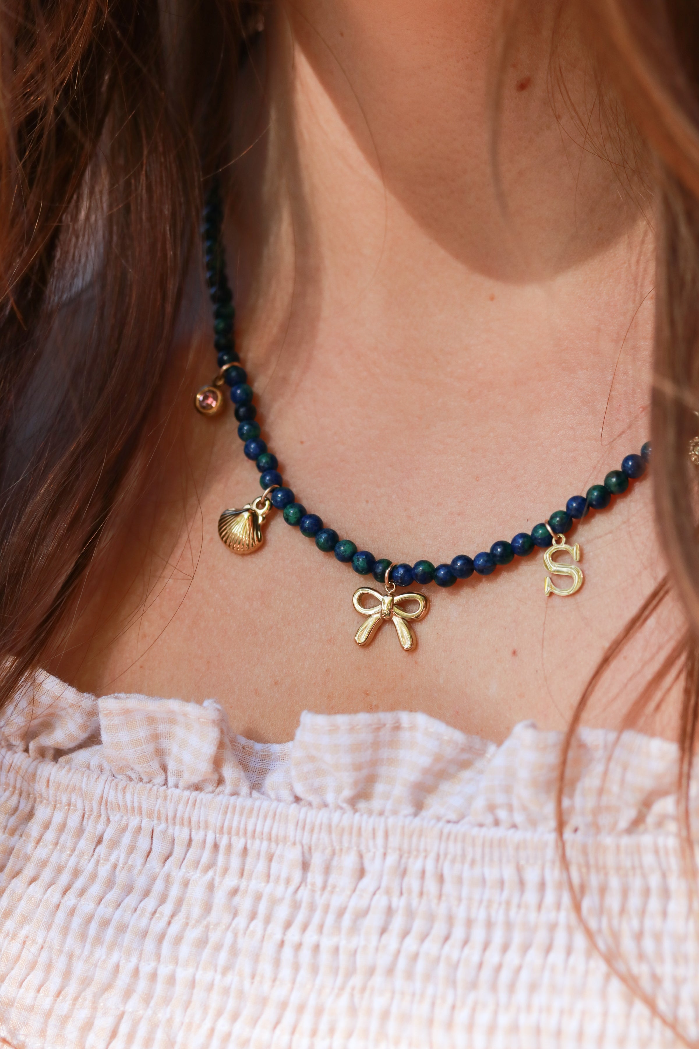 Create a necklace that tells your story. Our Beaded Stone Charm Necklace can be personalized with up to 8 gold charms - representing the moments, memories, and people that matter most. Choose from over 100 options including initials, hearts, stars, hobbies, travel icons, birthstones, and more.