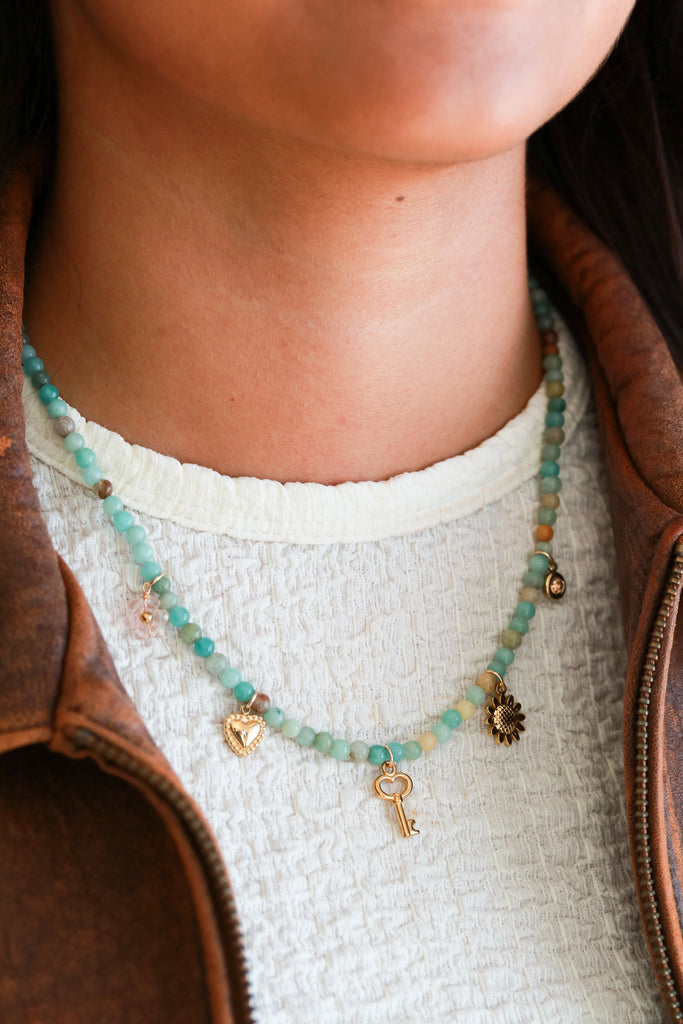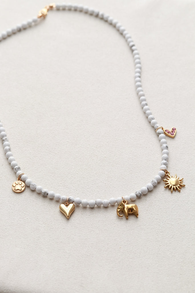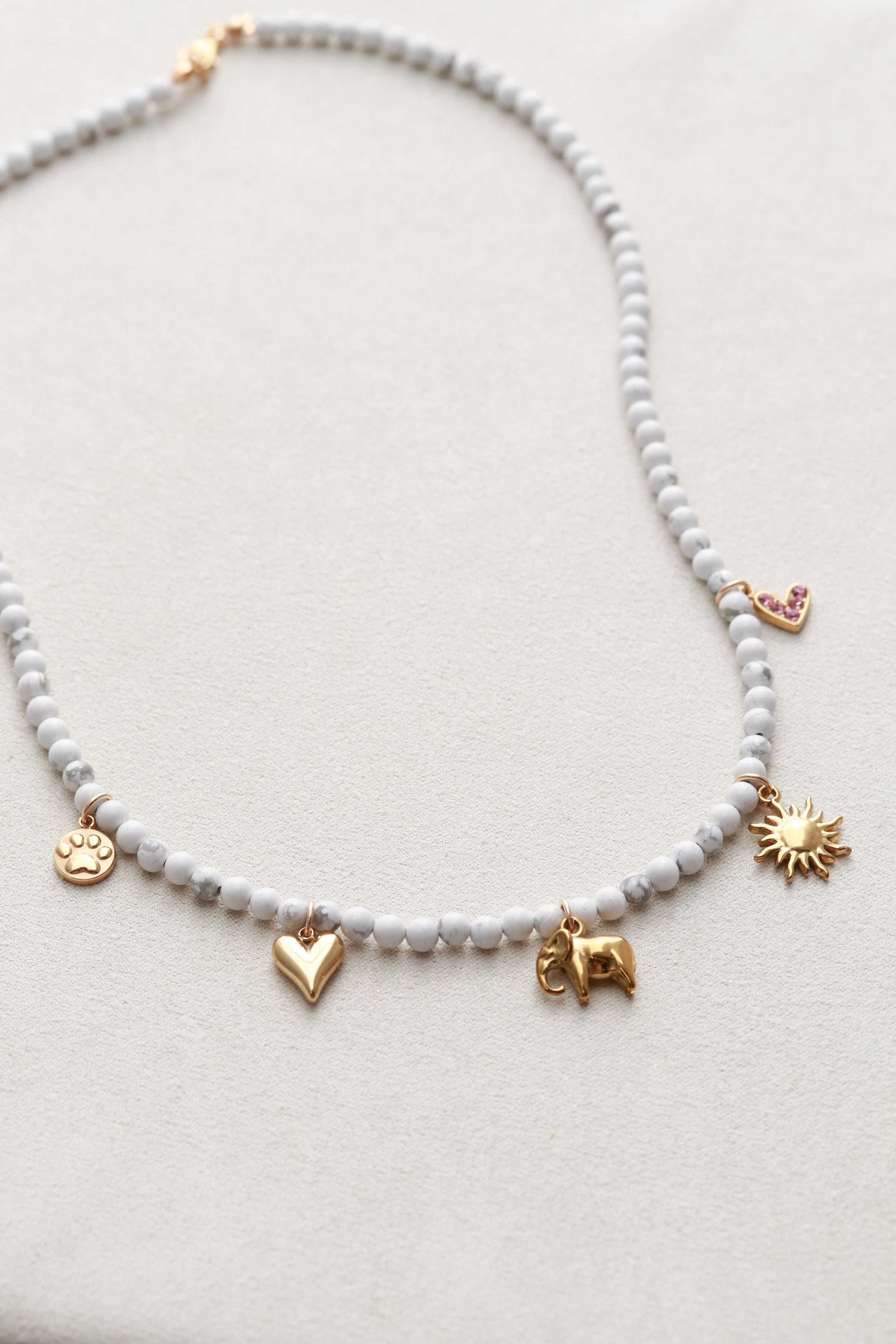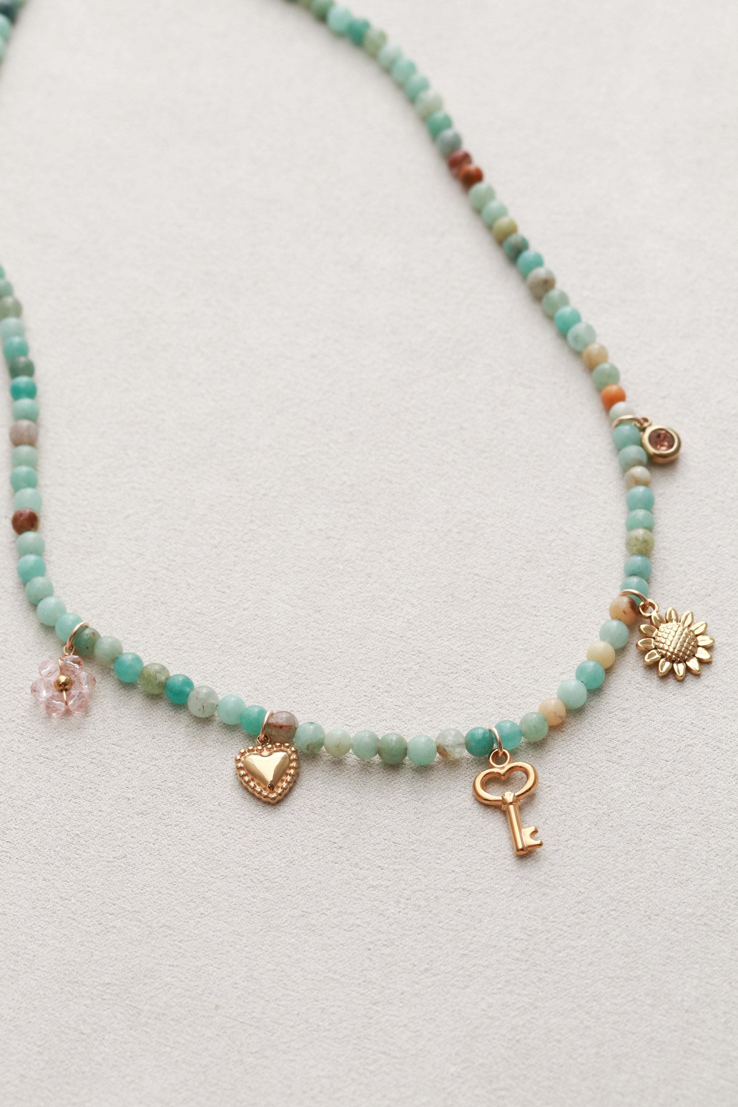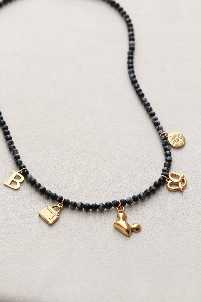 Create a necklace that tells your story. Our Beaded Stone Charm Necklace can be personalized with up to 8 gold charms - representing the moments, memories, and people that matter most. Choose from over 100 options including initials, hearts, stars, hobbies, travel icons, birthstones, and more.