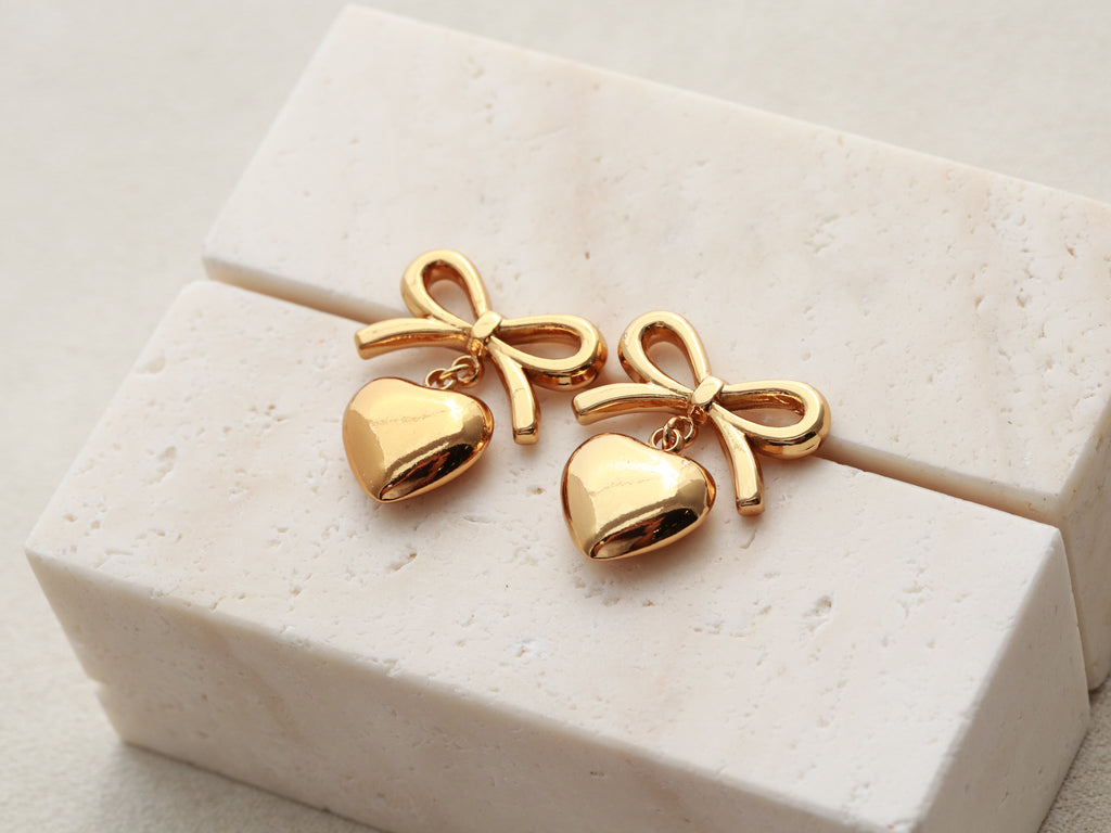 Bow Heart Statement Earrings