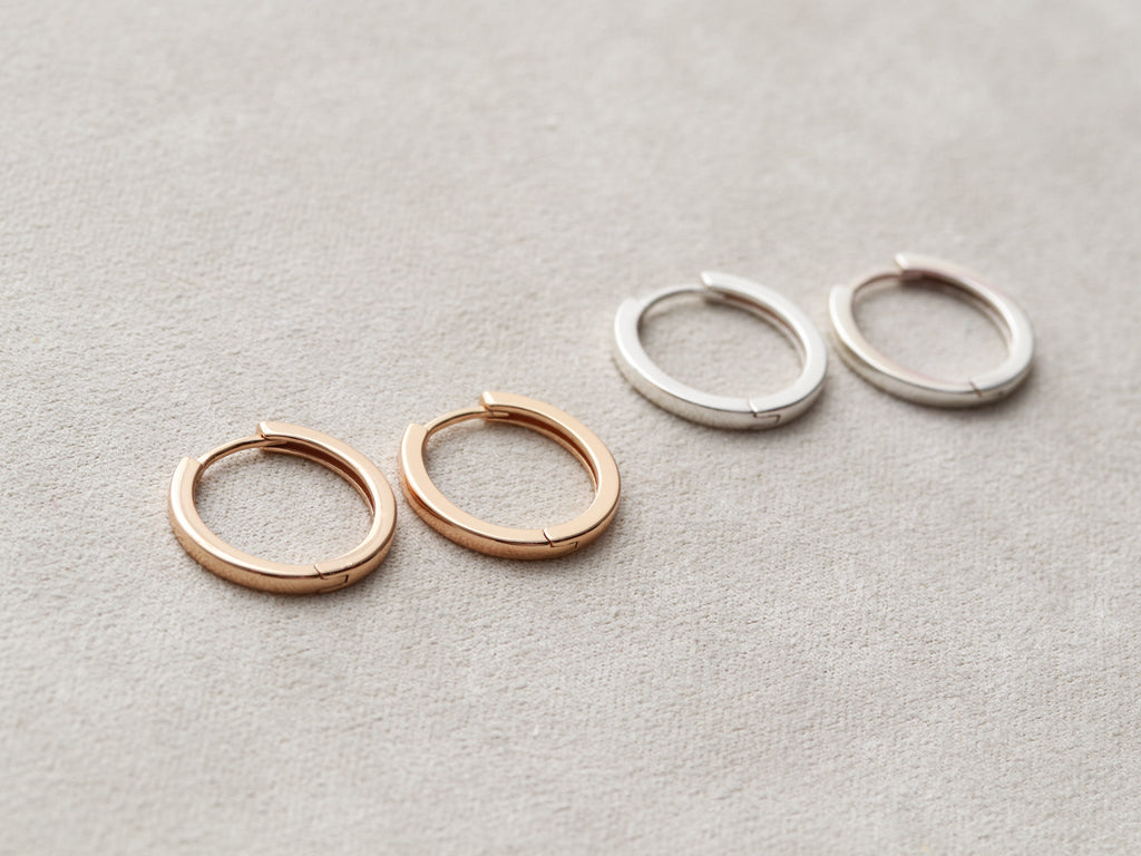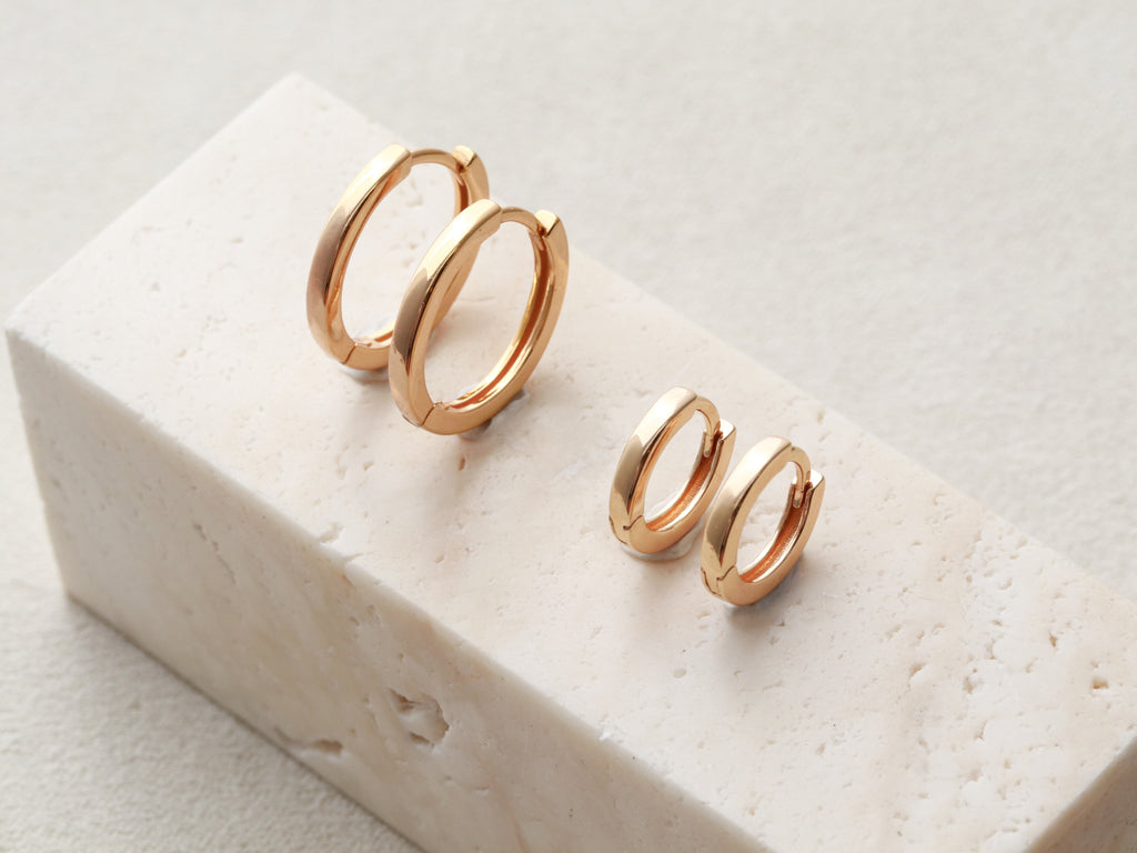 Your new everyday hoops. These 16mm huggies have a smooth, polished finish and a secure hinged closure for all-day and night comfort. Just the right size to wear alone or layered with other earrings.
