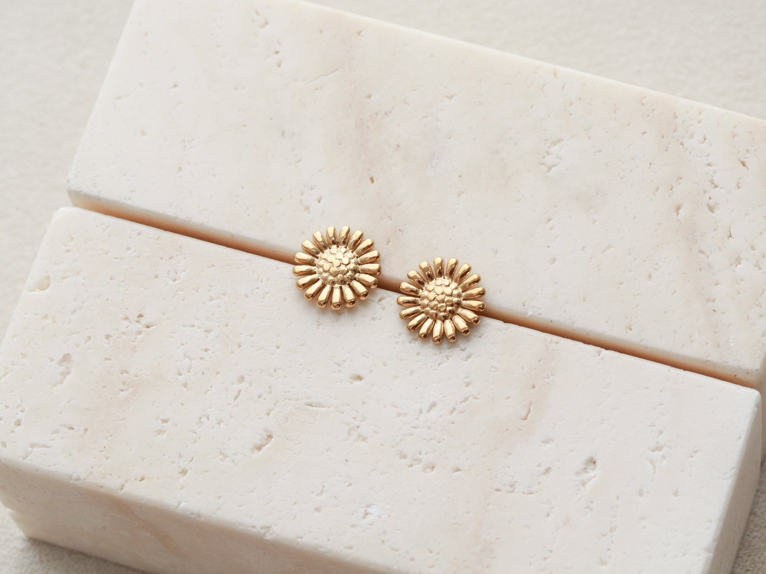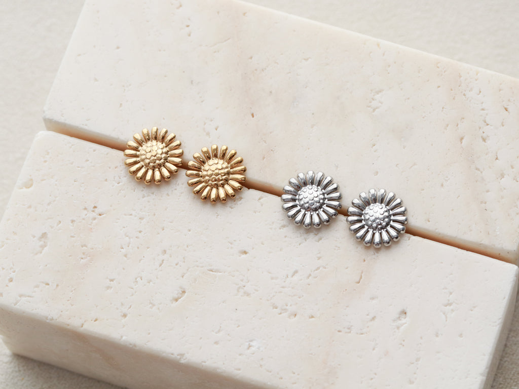Our Sunflower earrings come in either silver or gold and make the best compliment to our new Daisy Chain. Made with 14k gold over stainless steel makes these both hypoallergenic and waterproof.