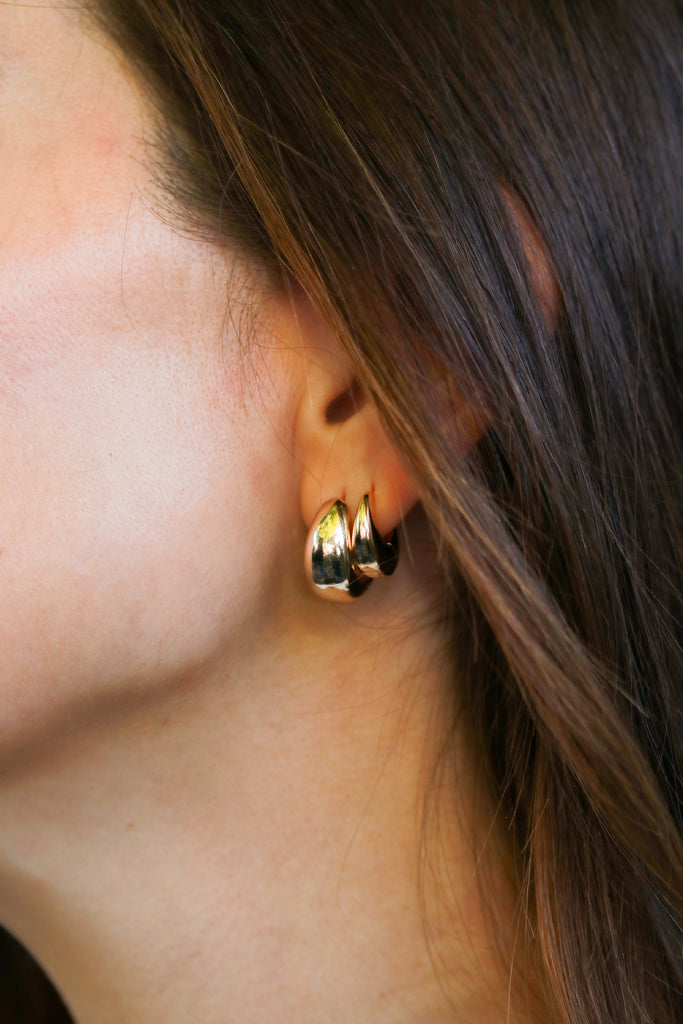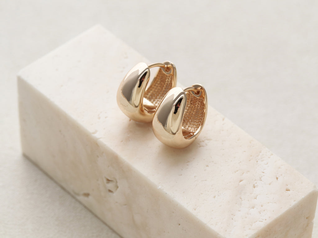 Bold yet timeless. These chunky teardrop hoops feature a smooth, domed shape that catches the light beautifully. Comfortable for everyday wear with a secure hinged closure. Perfect for stacking with our flatbacks and Mini Teardrop.